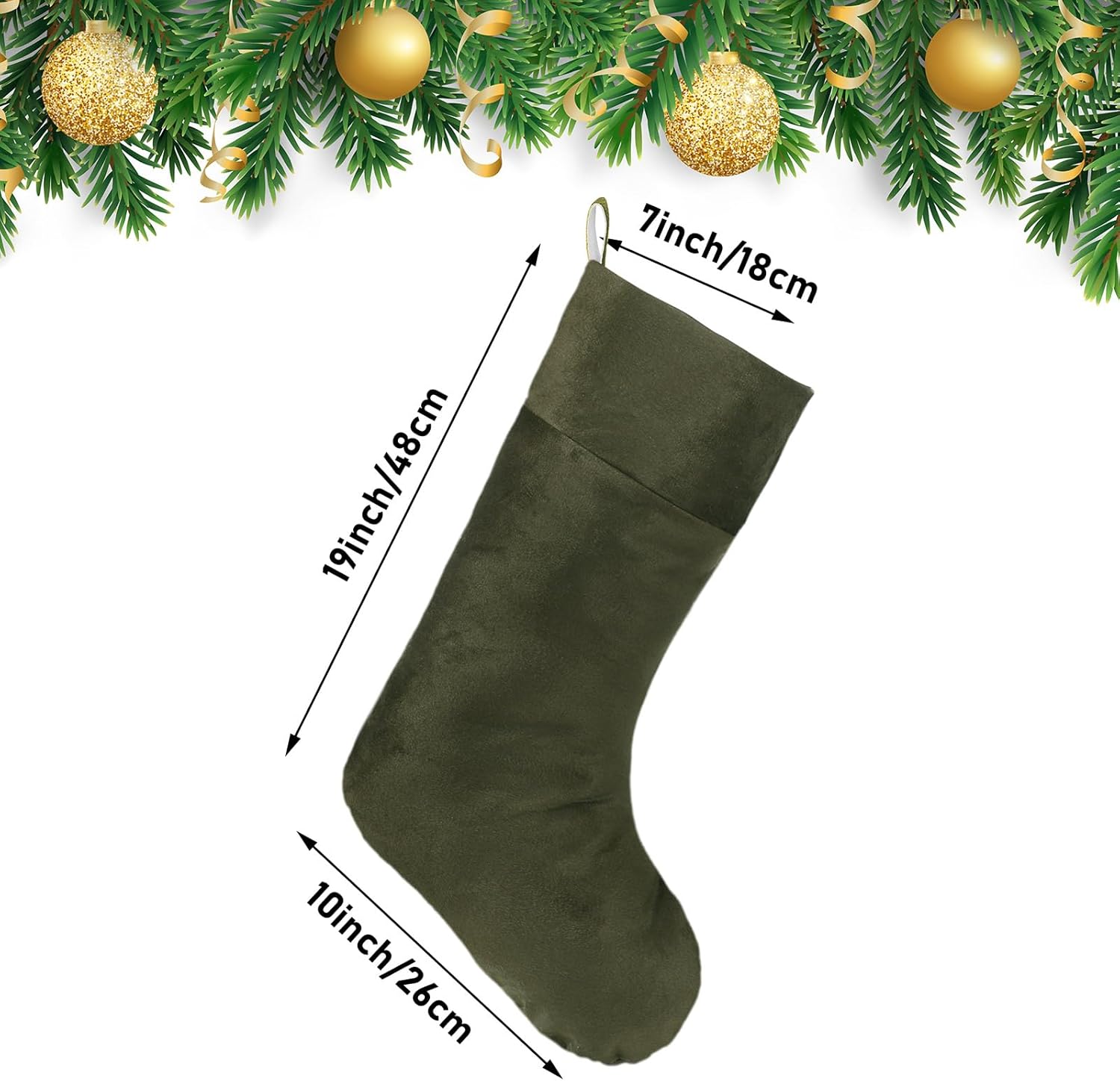 2 Pieces Christmas Velvet Stocking 10 x 19 Inch Xmas Hanging Stockings Sock for Fireplace Christmas Tree Ornament Holiday Season Party Decorations (Green)
