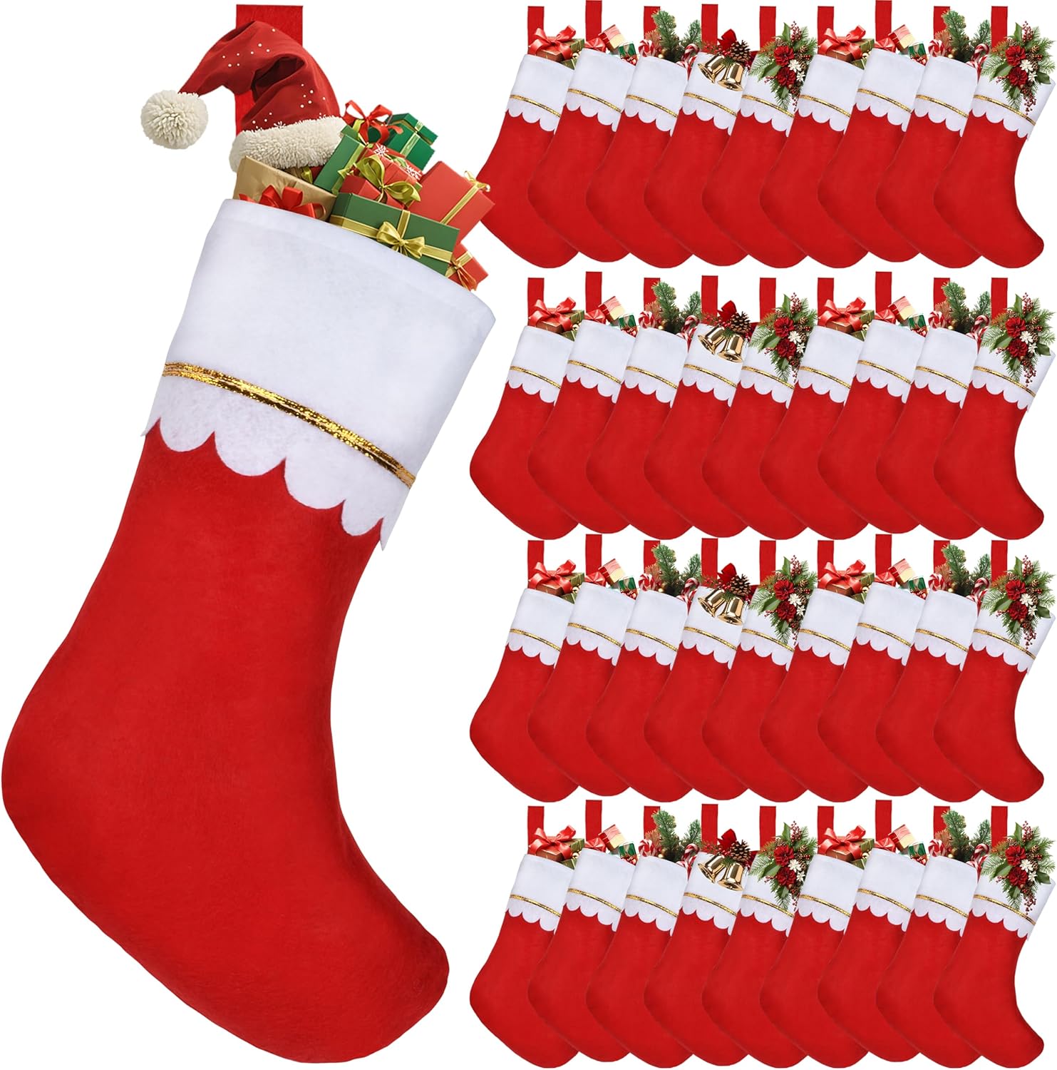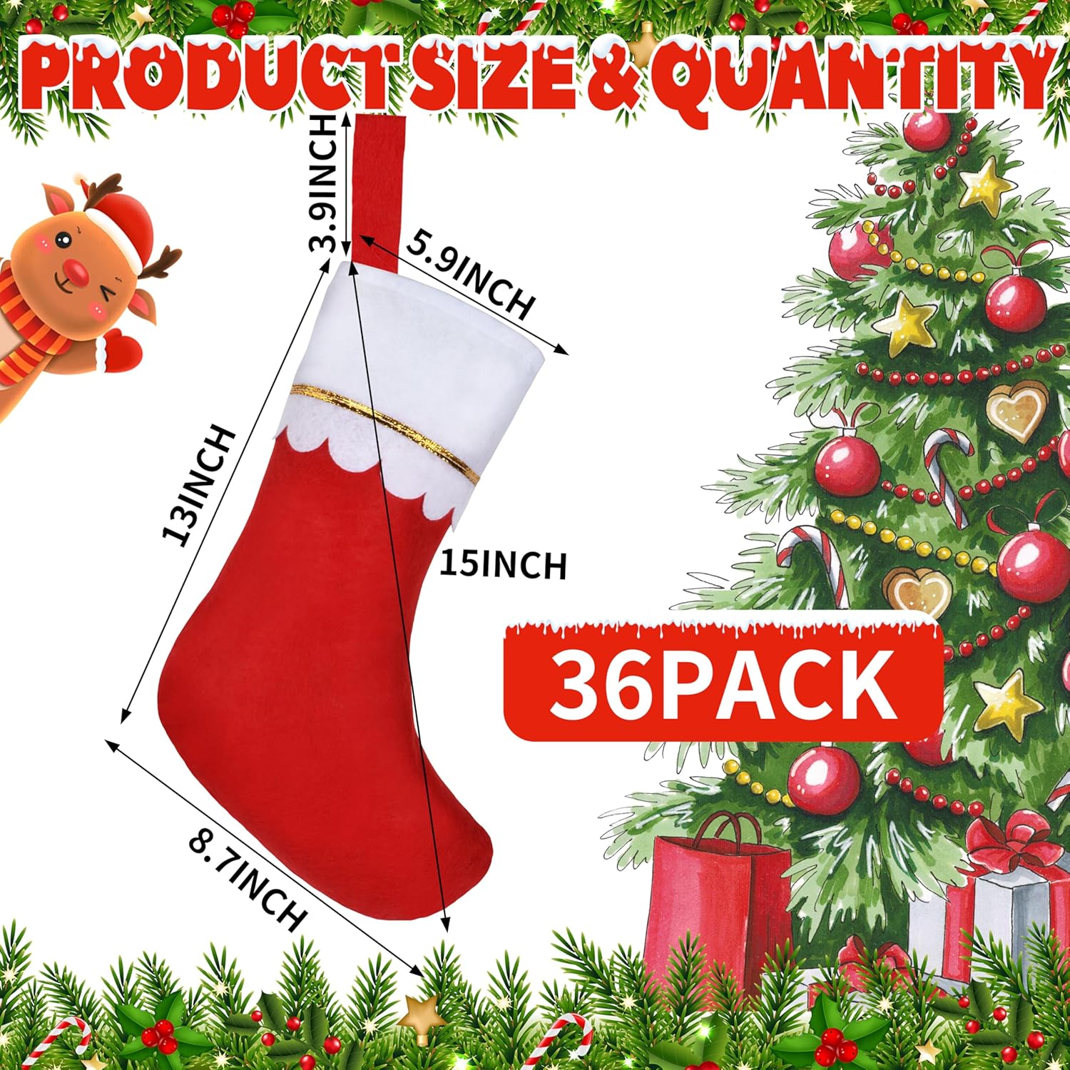 【Christmas Stocking Set】The package includes 36 pieces of red and white Christmas felt stockings with gold trim, measuring 14 inches in length and 9 inches in width. Felt stockings feature classic design and sufficient quantities can suit all your decorating needs