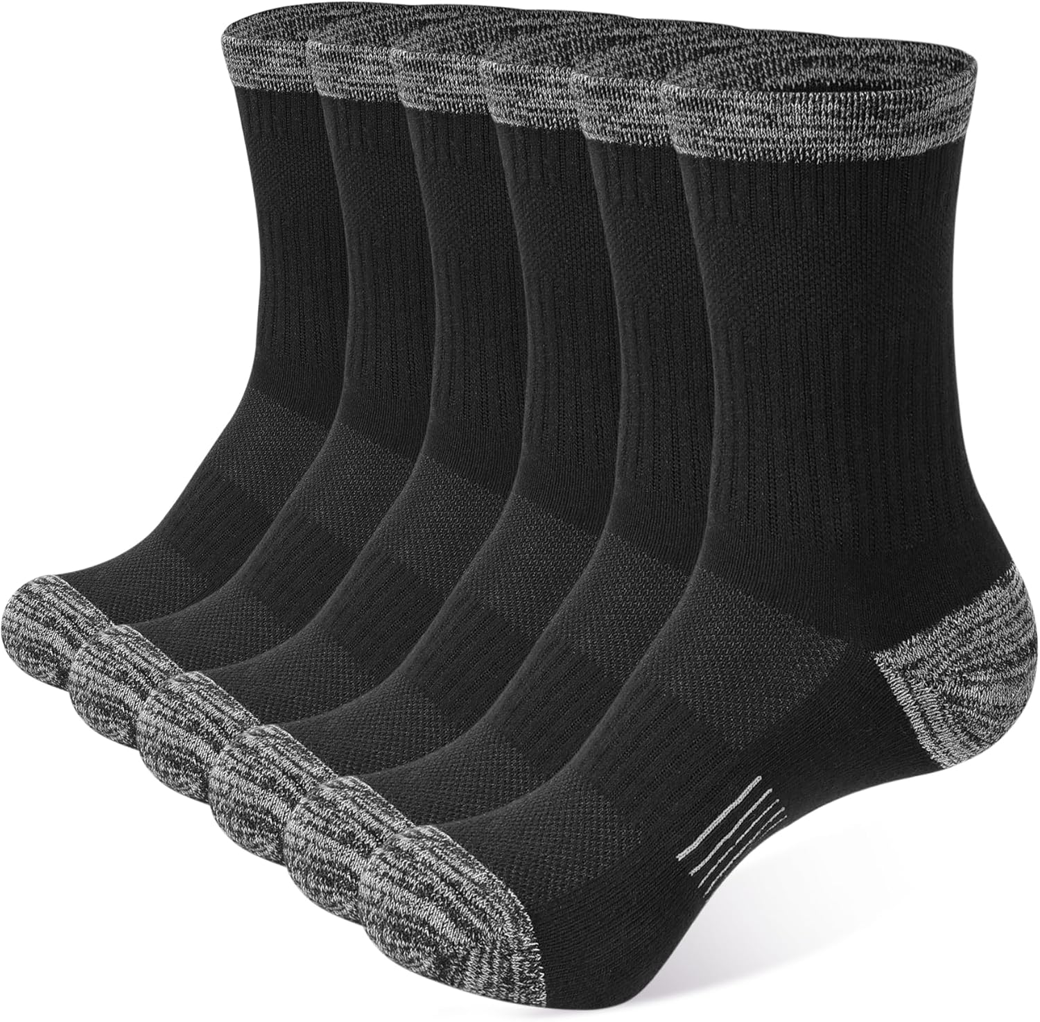 Crew Socks for Women Hiking Athletic Running Walking Cushioned Compression Cotton Socks 6 Pairs