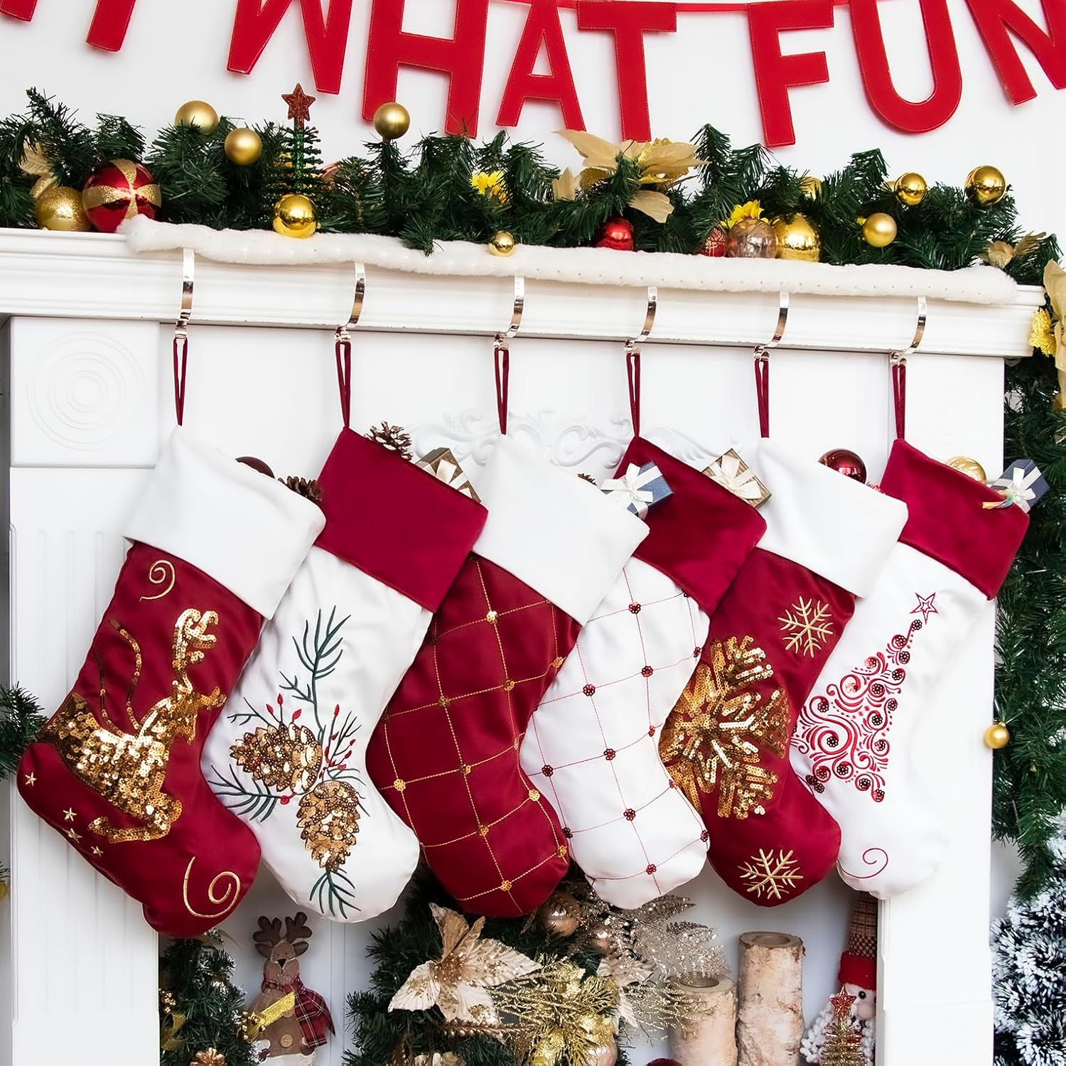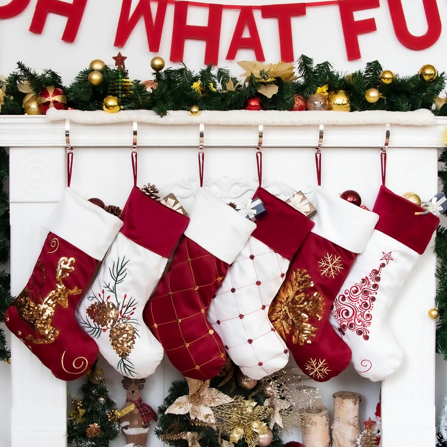 Family Christmas Stockings Set of 6 New Embroidery Sequins 20″ Large Decor Red White Gold Hanging Ornament Fireplace Xmas Tree Holiday Party Decoration (6 Packs)