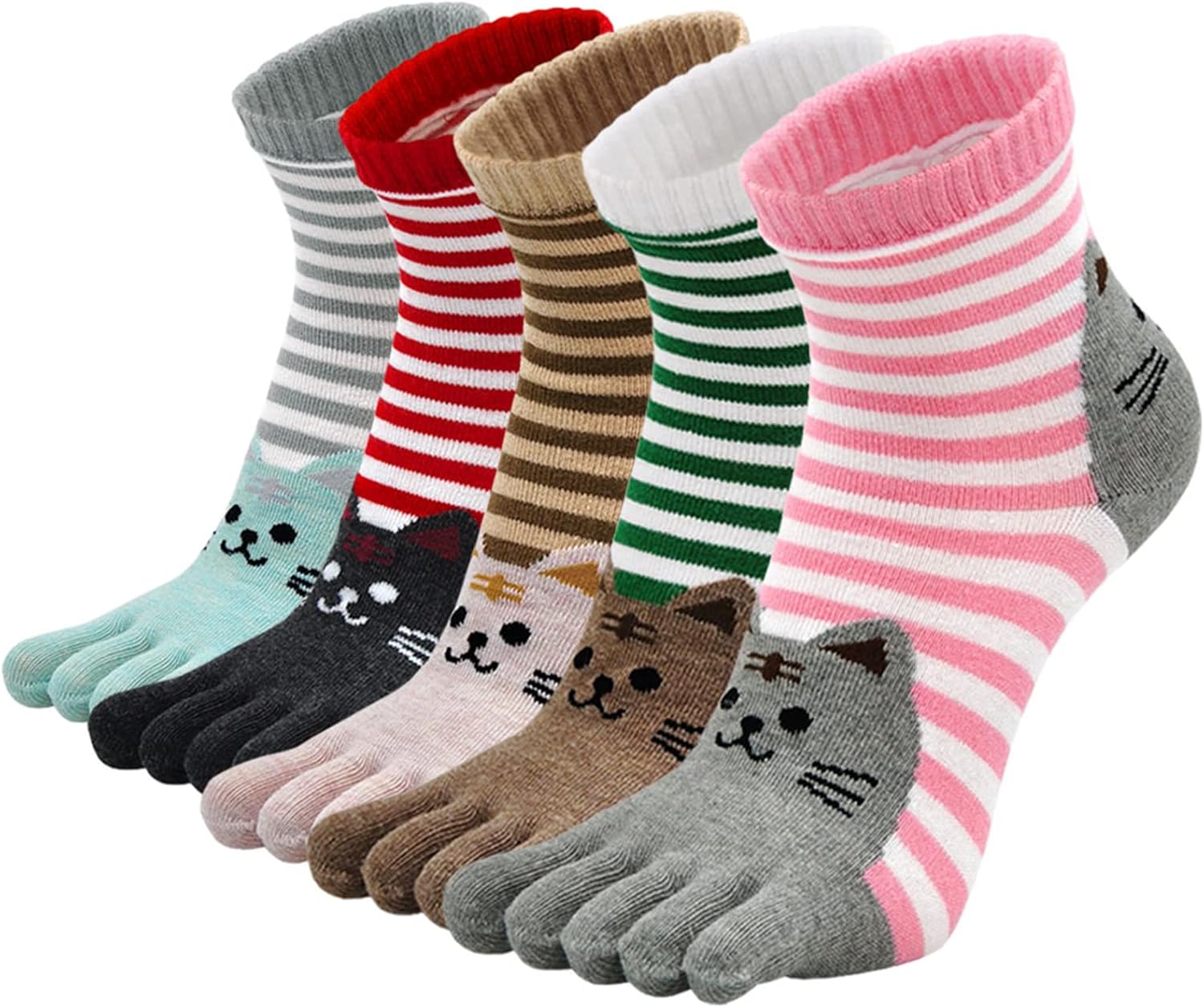Women Animal Toe Socks – Cotton Five Finger Colorful Funny Casual Crew Socks for Ladies