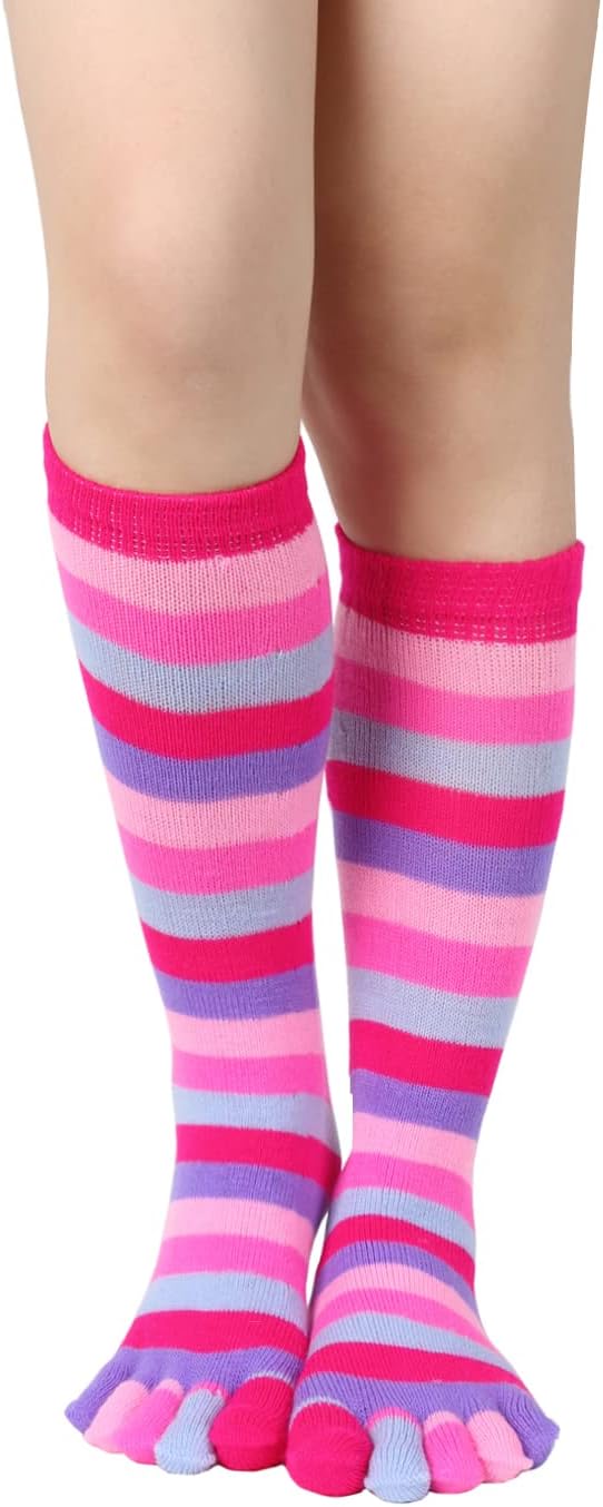 ❥ 【Fits for Many Occasions】Our colorful novelty crazy cotton toe socks for women girls are perfect for party event such as family reunion party, costume party, cosplay party to wear, they are also suitable for daily wear and sports wear like running since our products are long and soft cotton tube socks which will keep your legs warm and cozy. The soft cozy cotton knee high socks for women and girls will look great with your sneakers, running shoes, hiking shoes, boots, high heels.